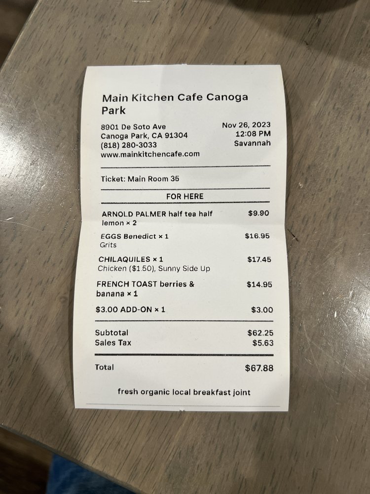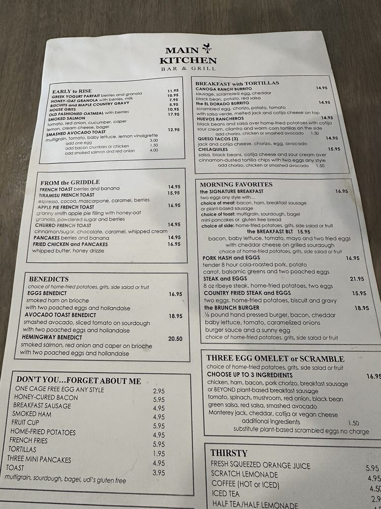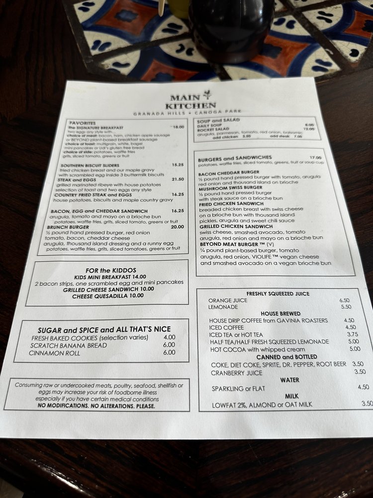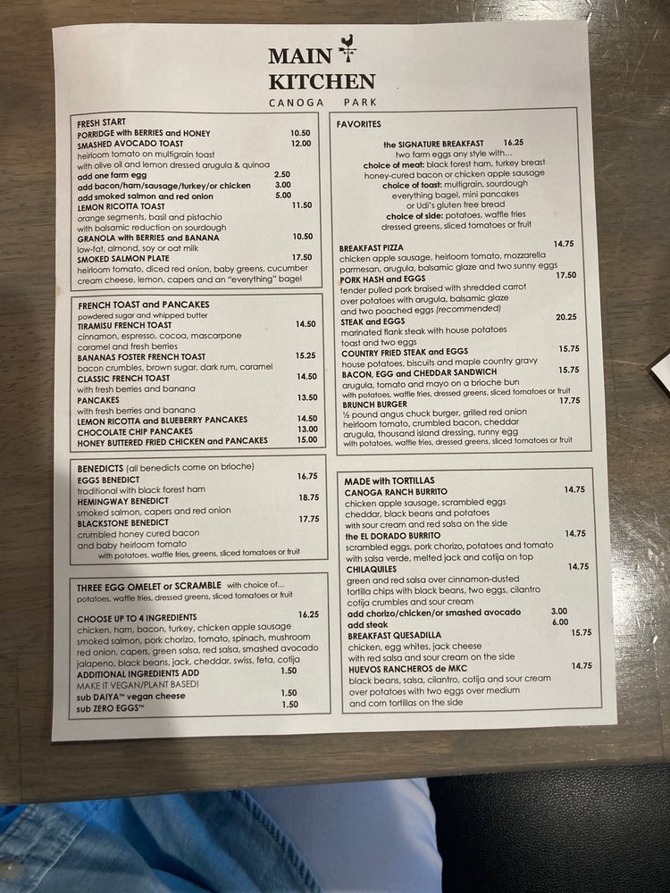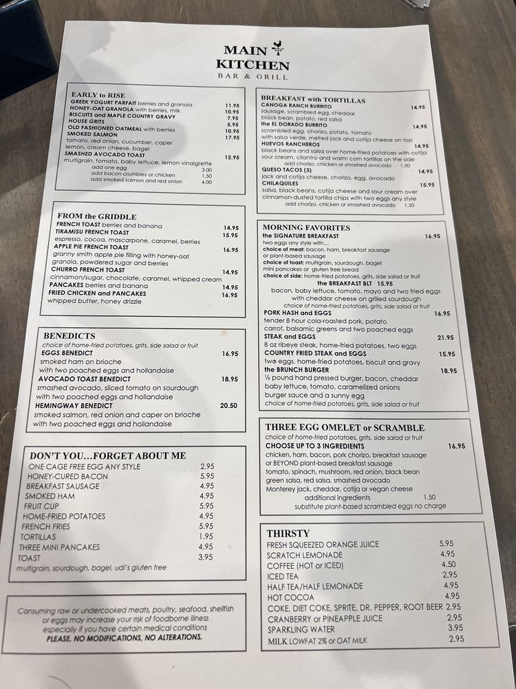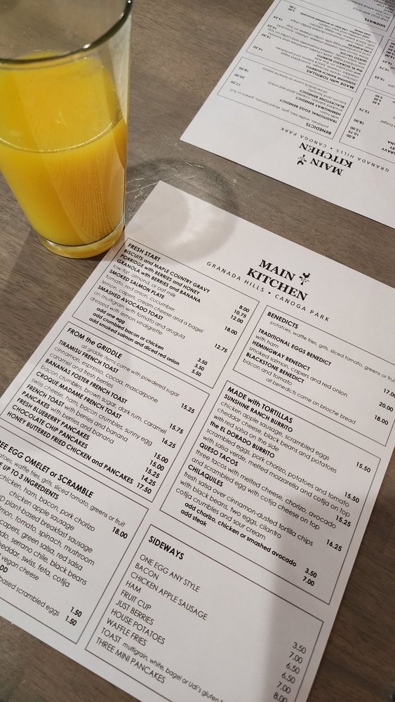 Welcome to Main Kitchen Bar & Grill, a vibrant destination nestled in Canoga Park, CA, where comfort meets culinary creativity. Specializing in New American cuisine, this cozy venue balances traditional flavors with a modern twist, perfect for any time of the day—especially breakfast and brunch. The menu boasts a variety of options, including delectable vegan and vegetarian dishes, ensuring there’s something for everyone.
