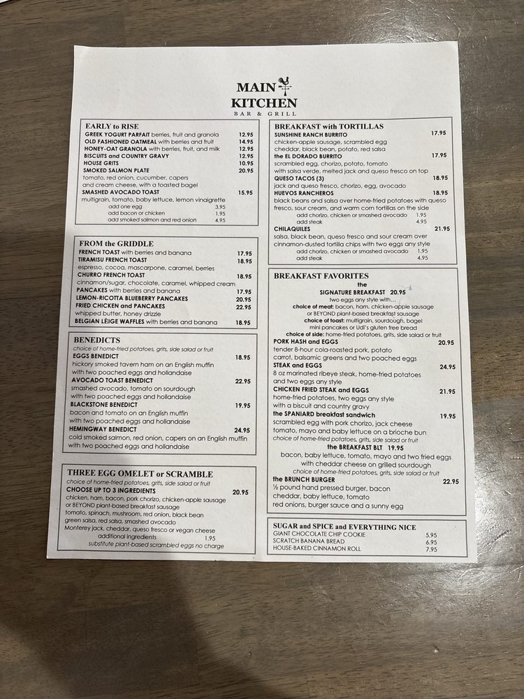 With its inclusive atmosphere, accessible amenities, and attentive staff, Main Kitchen Bar & Grill invites you to enjoy a casual meal that satisfies both the palate and the spirit.